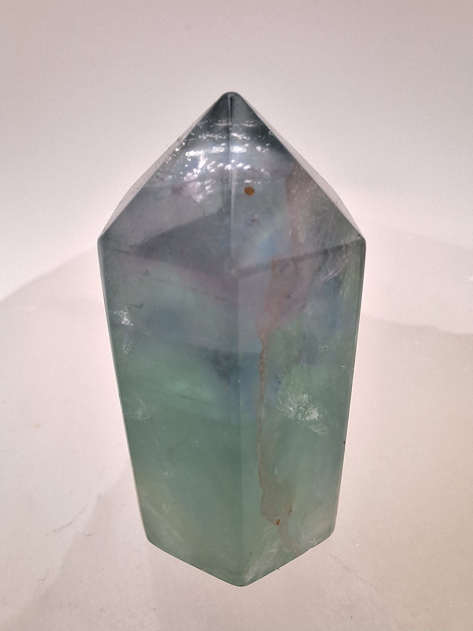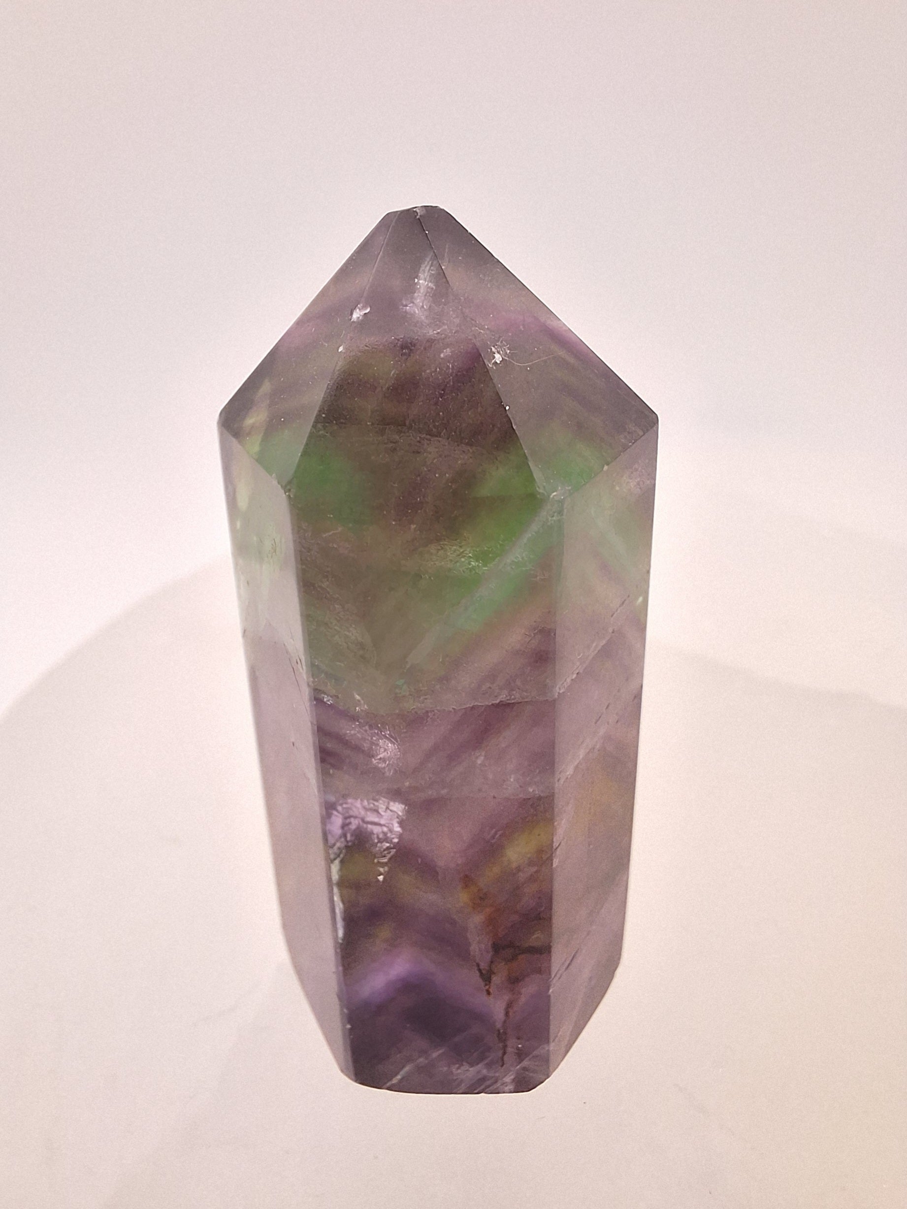 This Fluorite Mini Tower Point is a unique and colorful addition to any crystal collection. Each polished point showcases the beautiful zoning of purple, blue, and green hues. Embrace the individuality of natural materials with slight flaws in each piece.