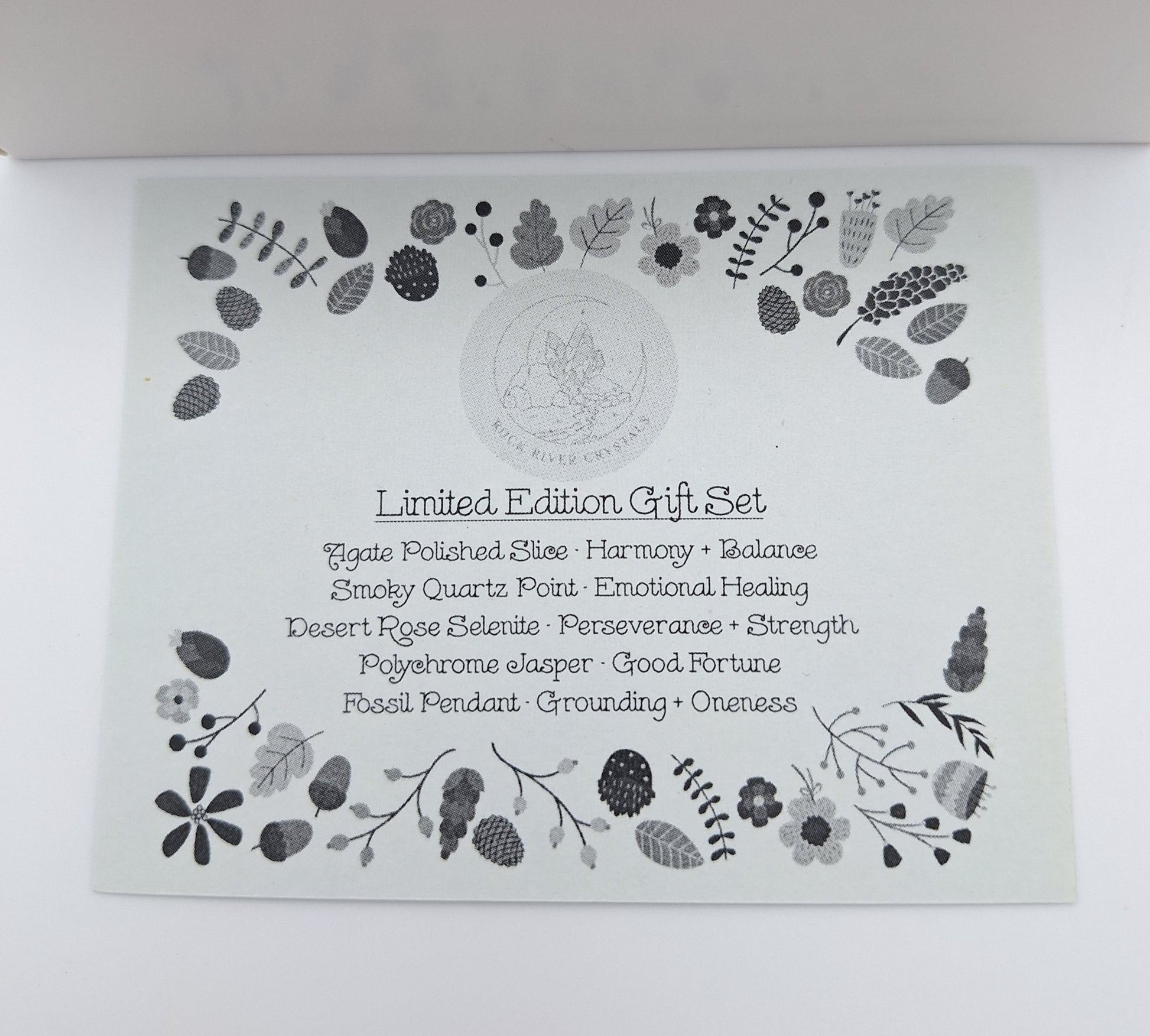 This lovely gift set also comes with a note card listing each item and meaningful key word associations.