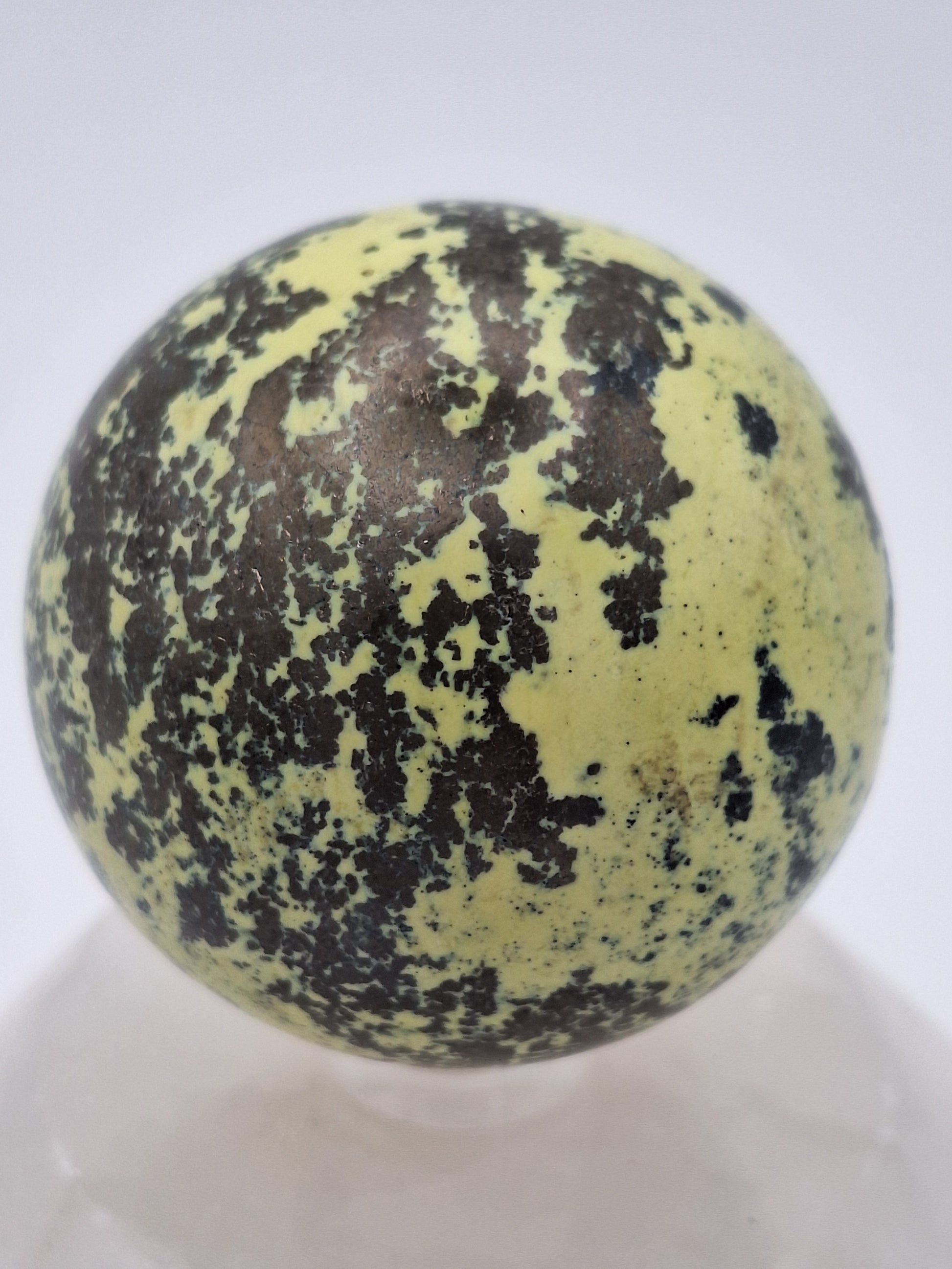 Add a natural and earthy touch to your decor with this serpentine sphere. Originating from Peru, this nicely polished sphere contains pyrite for a unique and eye-catching display. Bring a piece of Peru's beauty into your home and make a statement with this green beauty.